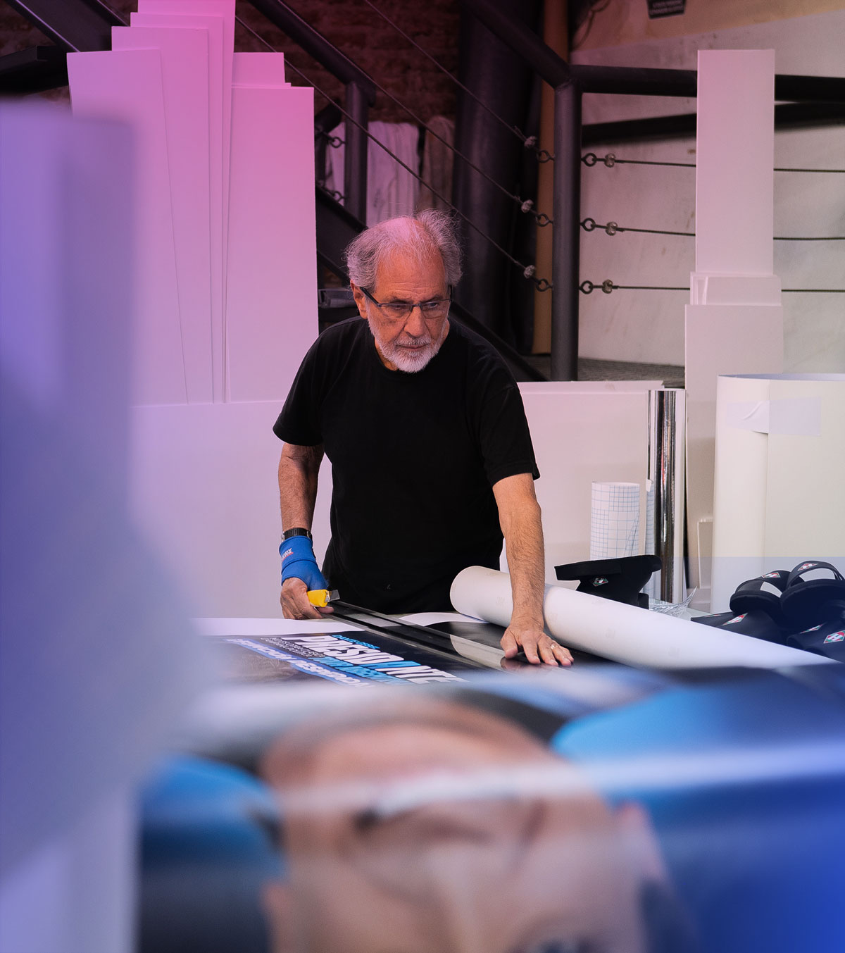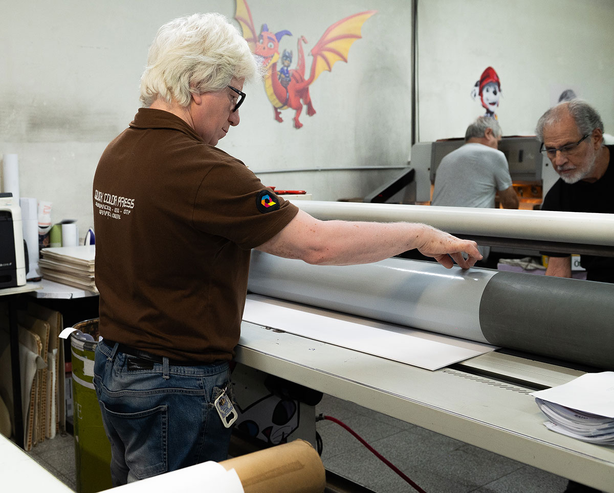- Cama plana: Impresión directa sobre materiales rígidos. Espesor Máximo 5 cm. Área de impresión: 125 x 250 cm. Tintas CMYK + Blanco.